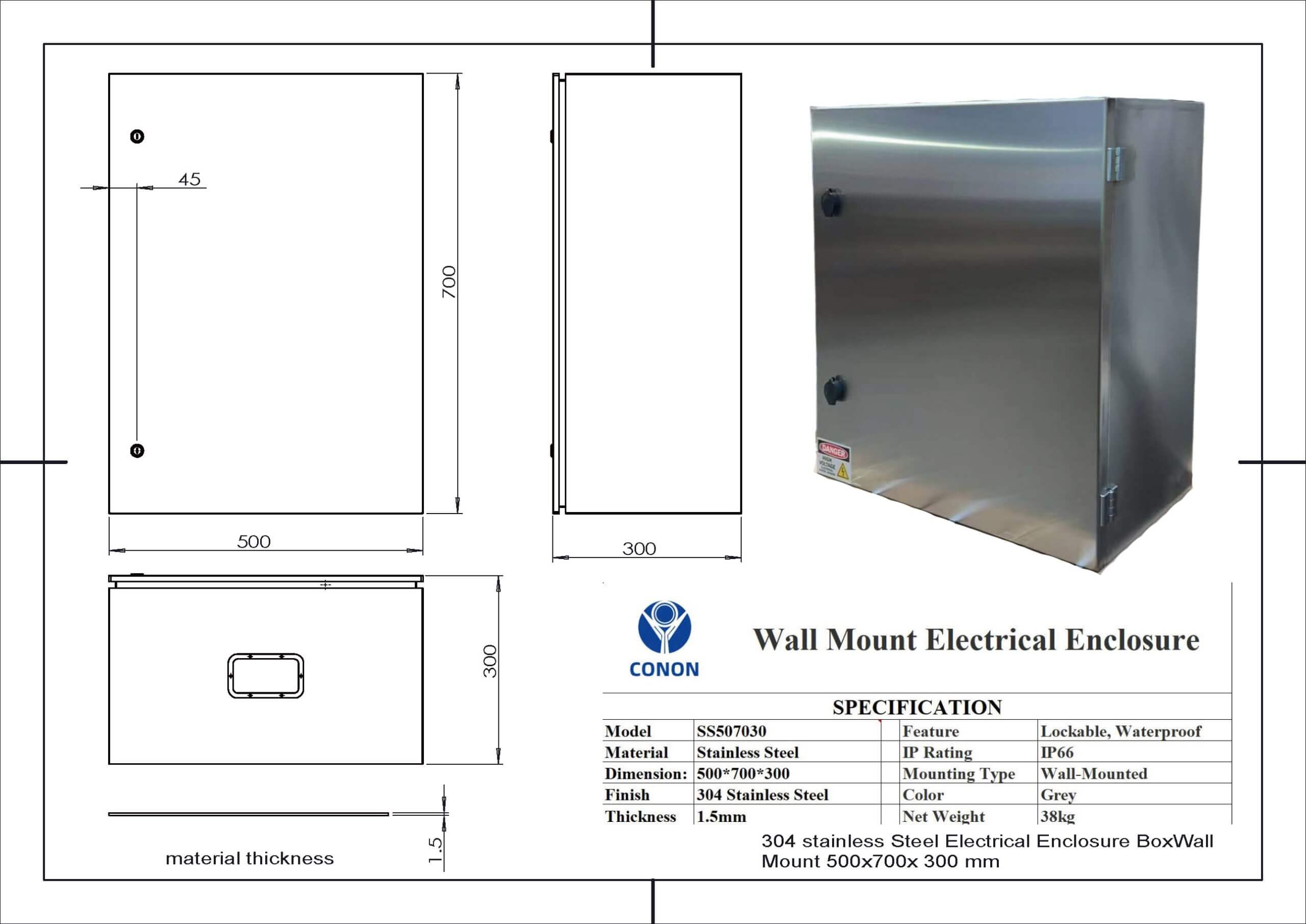 304 stainless Steel1.5mm Electrical Enclosure Box 500x700x300 IP66
